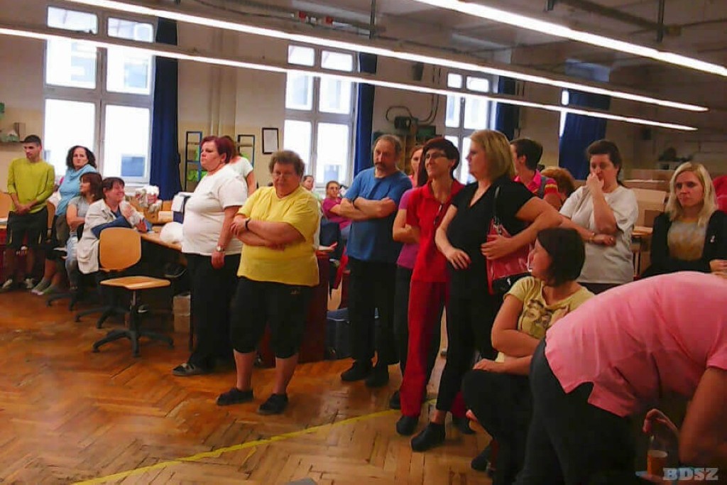 Varga Éva a BDSZ alelnöke a győri GLOVITA Kesztyűgyárban munkásgyűlésen tájékoztatta az üzem dolgozóit, a szakszervezet fontosságáról, a szakszervezeti szolgáltatásokról, a BDSZ-ben folyó szervezeti m...